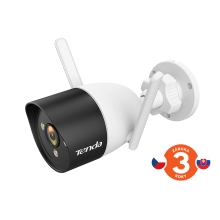 Venkovní IP kamera s online sledováním pomocí mobilního telefonu a tabletu. Ukládání záznamů a fotografií na microSD kartu nebo Cloud. Rozlišení FullHD pro video ve vysoké kvalitě, denní i noční provoz díky IR dosvitu až 30 m, ohnisková vzdálenost 4,0 mm, Wi-Fi b/g/n, 1x LAN RJ45 10/100 Mb/s, mikrofon a reproduktor, slot pro microSD kartu s velikostí až 128 GB. Kamera podporuje S-motion - automaticky ostří optiku tam kde je pohyb. Součástí balení je držák na stěnu/strop.